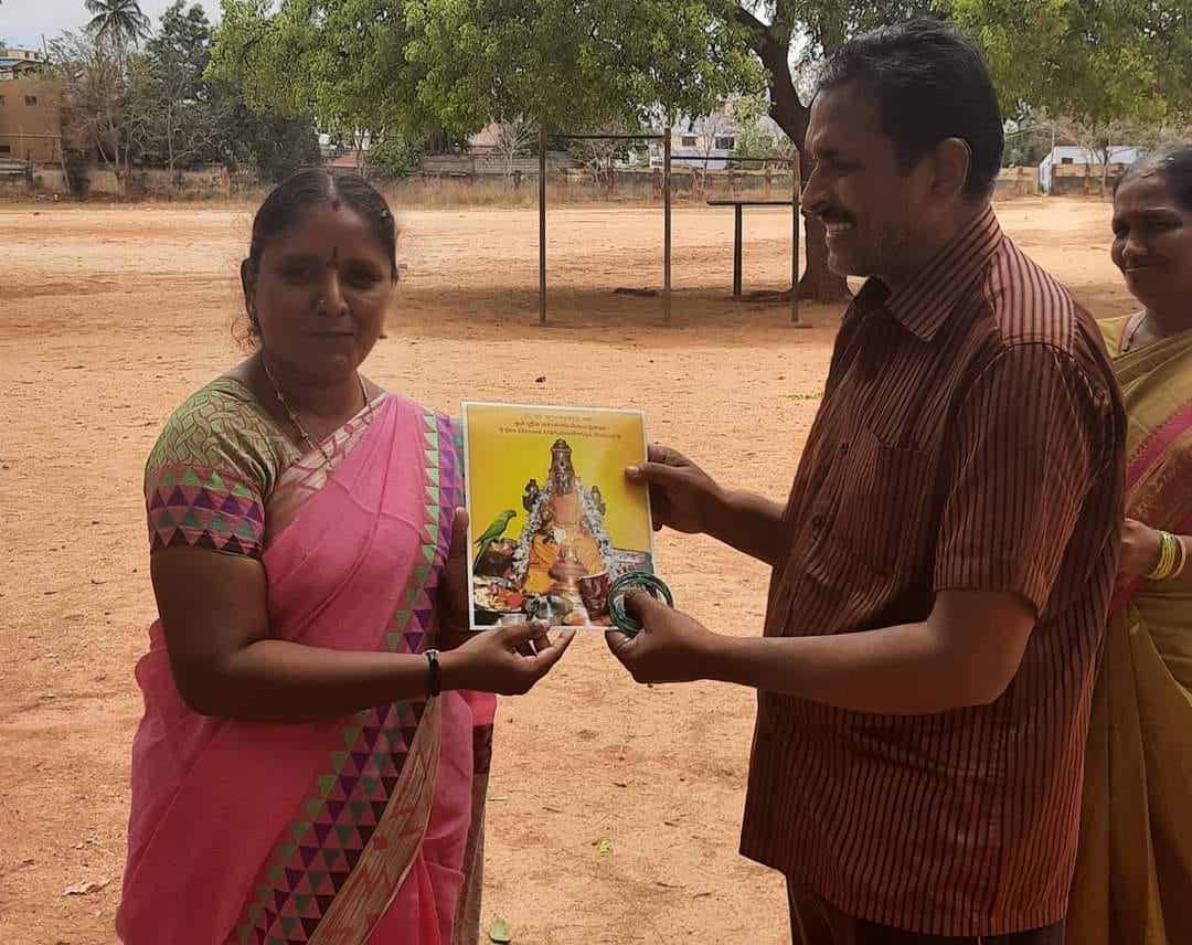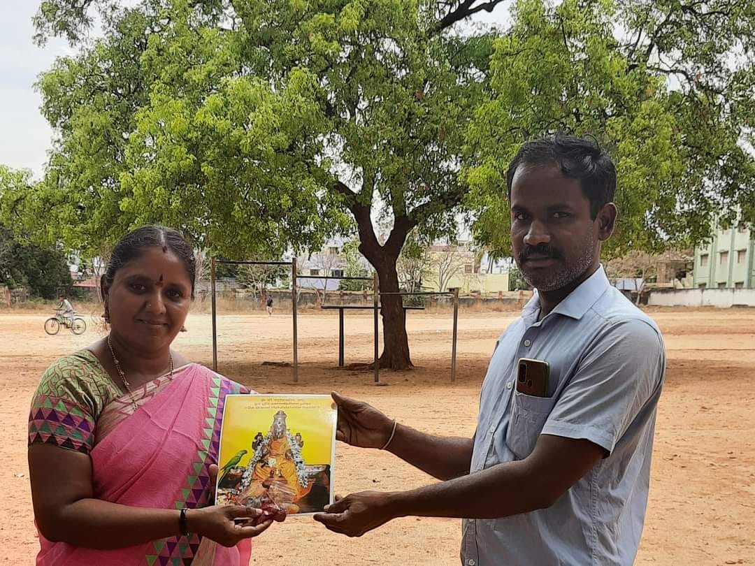 செல்வ வளம் மிக்க ஸ்ரீ மகாலட்சுமி போட்டோ ஸ்ரீ ஆண்டாள் பக்தர்கள் பேரவை சார்பில் உலகம் முழுவதும் வழங்கி வருகின்றோம். அந்த வகையில் படத்திற்கு பதிவு செய்திருந்த அன்பர்களுக்கு, ஸ்ரீ ஆண்டாள் பக்தர்கள் பேரவை நிர்வாகி அழகர் ஶ்ரீ வித்யா திண்டுக்கல் மாவட்டத்தில், வத்தலகுண்டு, நிலக்கோட்டை பகுதியில் அனைவருக்கும் ஸ்ரீ மஹாலக்ஷ்மி படத்தோடு, ஶ்ரீவில்லிபுத்தூரில் பூஜை செய்யப்பட்ட ஒரு ரூபாய் நாணயம், காமாட்சி குங்குமம், கண்ணாடி வளையல் ஆகியவை வழங்கப்பட்டது. கூடுதலாக ராமர் பட்டாபிஷேக படமும் வழங்கிய போது எடுத்த புகைப்படங்கள்..