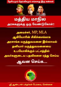அமைச்சர், MP, MLA ஆகியோரின் சிகிச்சைக்காக அரசாங்க மருத்துவமனை இல்லாமல் தனியார் மருத்துவமனையை உபயோகிக்கும் பட்சத்தில் அவர்களுடைய பதவிகளை ரத்து செய்ய ஆவன செய்க…