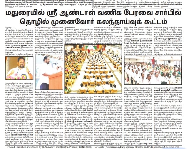 நடந்த ஸ்ரீ ஆண்டாள் வணிக பேரவை சார்பில் தொழில் முனைவோர் கலந்தாய்வுக் கூட்டம்.