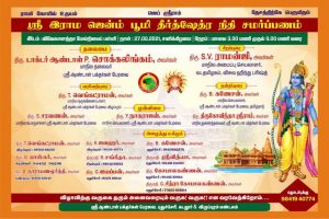 March 01 2021 0Commentஸ்ரீராம் ஜென்மபூமி தீர்த்த சேஷ்டா – Pondicherry Meeting(27/02/2021)!! Posted by Vastu_Shastram In Blog, posters ஸ்ரீராம் ஜென்மபூமி தீர்த்த சேஷ்டா – Pondicherry Meeting(27/02/2021)!!Share this: Tags: ayodhya, ayodhyaramamandirnidhisamarpan, coimbatore, DrAndalPChockalingam, erode, kovai, meeting, namakkal, RamMandir, rammandirayodhya, RSS, SABP, Sri_Aandal_Bakthargal_Peravai, Srilanka, SriramJanmbhoomiTeerthKshetraTrust, SriRamMandir, valapadi, vhpss, அயோத்தியா, இலங்கை, தாருங்கள், ராமர்கோவில், வாருங்கள், ஸ்ரீ_ஆண்டாள்_பக்தர்கள்_பேரவை, ஸ்ரீராம்_ஜென்மபூமி_தீர்த்த_சேஷ்டா Share: