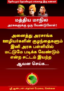 அனைத்து அரசாங்க ஊழியர்களின் குழந்தைகளும் இனி அரசு பள்ளியில் மட்டுமே படிக்க வேண்டும் என்ற சட்டம் இயற்ற ஆவன செய்க…