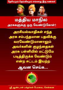 அரசியல்வாதிகள் எந்த அரசு சம்பந்தமான பதவிக்கு வரவேண்டும் ஆனாலும் அவர்களின் குழந்தைகள் அரசு பள்ளியில் மட்டுமே படித்திருக்க வேண்டும் என்ற சட்டம் இயற்ற ஆவன செய்க…