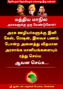 அரசு ஊழியர்களுக்கு இனி கேஸ், ரேஷன், இலவச பணம் போன்ற அனைத்து விதமான  அரசாங்க மானியங்களையும் ரத்து செய்ய ஆவன செய்க….