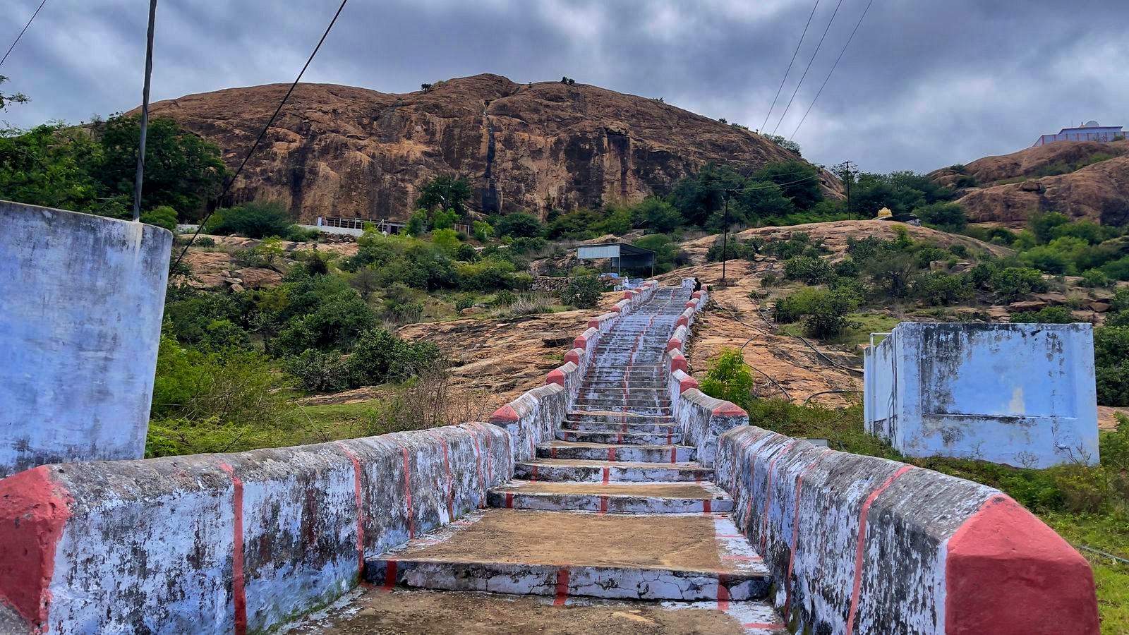 - இம்மலையின் அடிவாரத்தில் ஒரு சிறிய ஏரி உள்ளது. அதன் அருகே பெரிய ஆலமரத்தடியில் பாதவிநாயகர் சன்னதி உள்ளது. அடுத்து மலைமீது செல்வதற்கான படிக்கட்டுகள் தொடங்குகின்றன. வலப்புறம் தொல்பொருள் ஆய்வு துறையினரின் கல்வெட்டுப் பலகை பதிக்கப்பட்டுள்ளது. இக்கல் வெட்டில் இம்மலையின் தொன்மை, சிறப்புக்கள், இம்மலையில் தவம் புரிந்த தீர்த்தங்கர்கள், கல்வெட்டுகள் சமண பள்ளிகள் இரண்டாம் வர குணபாண்டியனின் கல்வெட்டுக்களைப் பற்றிய செய்திகளைத் தாங்கி நிற்கின்றது.