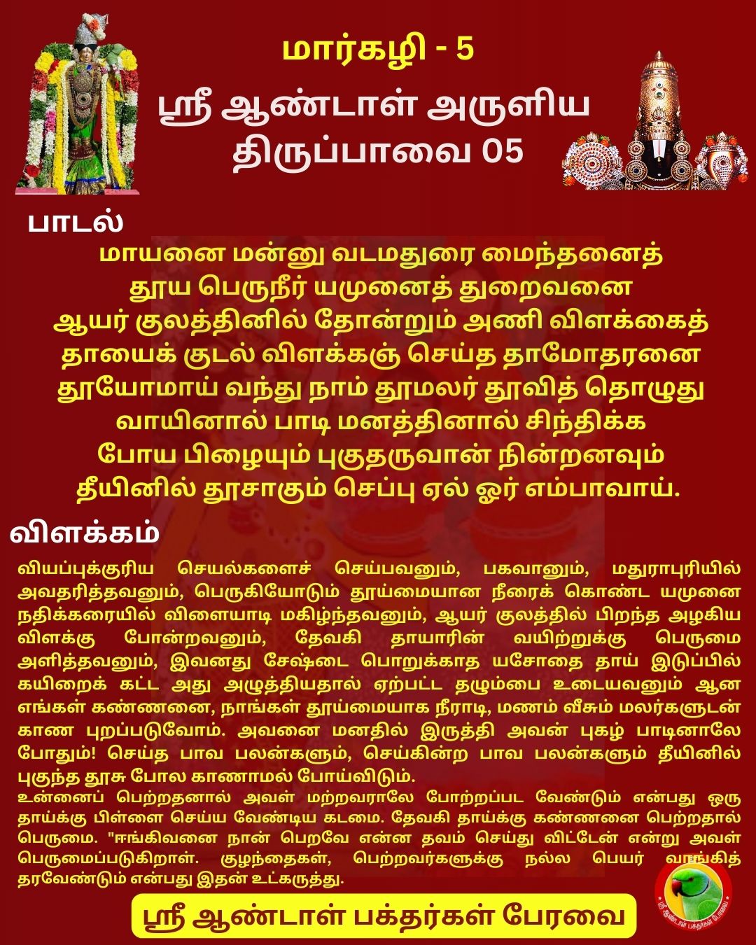 ஆண்டாள் தாயார் அருளிய திருப்பாவை பாசுரம் 5..