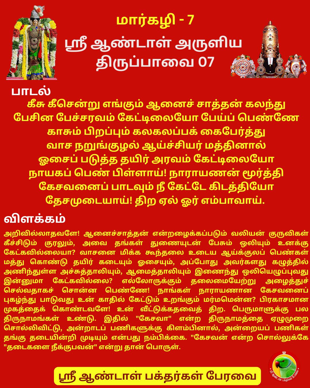 December 24 2024 0Commentஆண்டாள் தாயார் அருளிய திருப்பாவை பாசுரம் 7.. Posted by Vastu_Shastram In திருப்பாவை பாசுரம் ஆண்டாள் தாயார் அருளிய திருப்பாவை பாசுரம் 7..Share this: Tags: ஆண்டாள் தாயார் அருளிய திருப்பாவை பாசுரம்1 Share:
