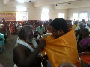 பரகால இராமானுஜதாசர் – தற்கால வைணவத்தின் தவிர்க்கவே முடியாத உண்மையான வைணவர்…. மெத்த படித்தவர்… வசதி நிறைந்தவர்…. அப்படிப்பட்ட பெருமை வாய்ந்த அற்புதமான மனிதர் ஸ்ரீவில்லிபுத்தூரில் ஆடி பூரத்தன்று (30-07-2014) அவர் தன்னுடைய சொந்த பணத்தில் எந்தவிதமான தற்பெருமையும், சுய தம்பட்டமும் இல்லாமல் வருடாவருடம் செய்து வரும் மிகப்பெரிய அன்னதானத்தை என்னை துவக்கி வைக்குமாறு கேட்டு கொண்டார். அவர் வேண்டுகோளுக்கிணங்க நண்பர்கள் சேலம் ரங்கநாதன், அடையார் அபுதாலிப், திருச்செங்கோடு நாகராஜன், செந்தூர் சுப்பிரமணியன், பெரியமணலி சரவணன் முன்னிலையில் அன்னதானத்தை துவக்கி வைத்த போது எடுத்த படங்கள்:-