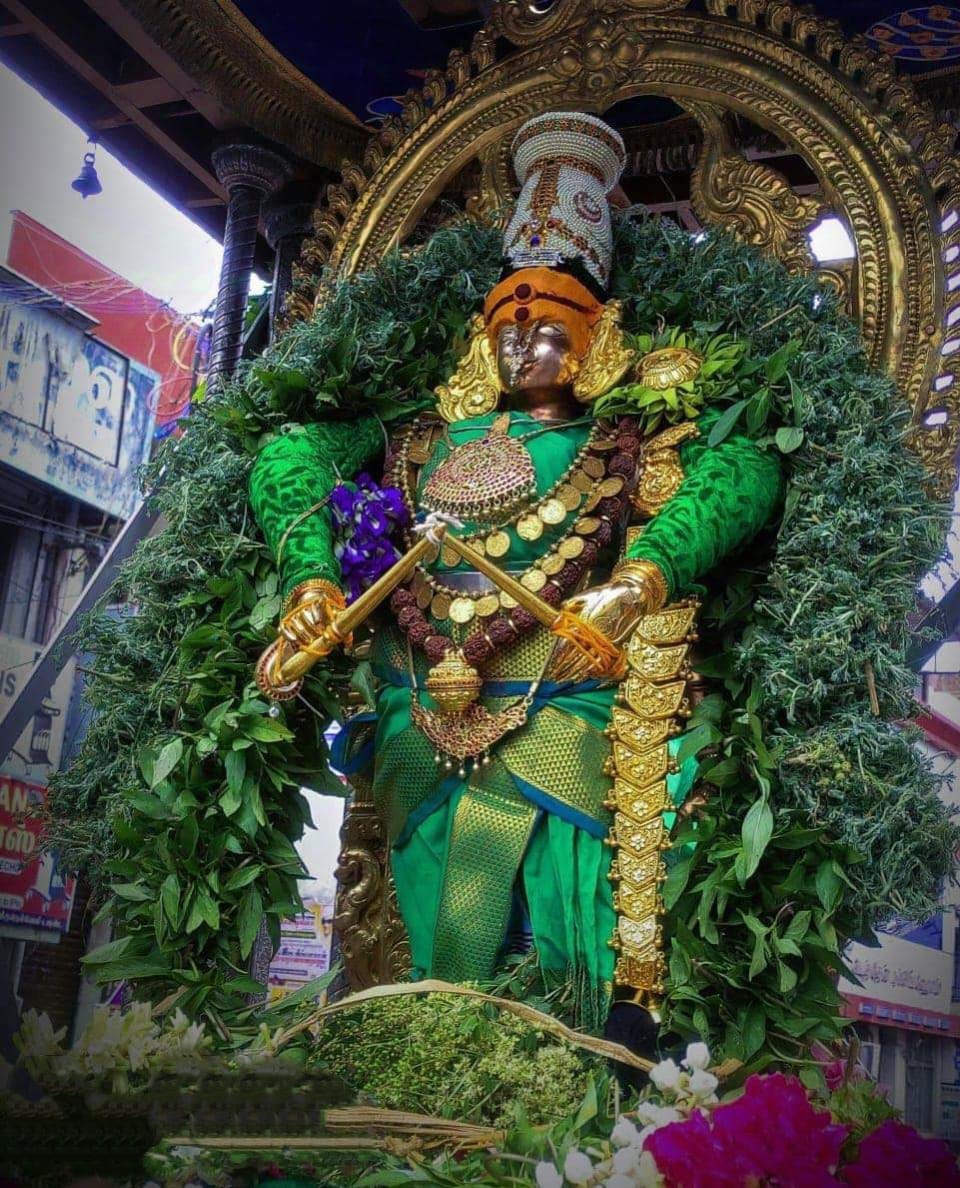 ஐப்பசித் திருக்கல்யாணத் திருவிழா, காந்திமதி அம்மை கோலாட்ட அலங்காரத்தில், பச்சை சாத்தி புறப்பாடு,