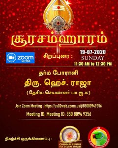 July 29 2020 0Commentசூரசம்ஹாரம் Posted by Vastu_Shastram In Blog, posters Inviting you to a scheduled Zoom meeting.Topic: சூரசம்ஹாரம்Time: Jul 19, 2020 11:30 AMJoin Zoom Meetinghttps://us02web.zoom.us/j/85080949356Meeting ID: 850 8094 9356Share this: Tags: Bjp, HRaja, Special_guest, Zoom, சூரசம்ஹாரம், தர்மபோராளி Share: