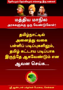 July 05 2020 0Commentதமிழ்நாட்டில் அனைத்து வகை பள்ளி படிப்புகளிலும் தமிழ் கட்டாய படிப்பாக இருந்தே ஆகவேண்டும் என ஆவன செய்க… Posted by Vastu_Shastram In Blog, SABP தமிழ்நாட்டில் அனைத்து வகை பள்ளி படிப்புகளிலும் தமிழ் கட்டாய படிப்பாக இருந்தே ஆகவேண்டும் என ஆவன செய்க… Share this: Tags: christians மதமாற்ற_தடை_சட்டம், Driving_license, hindus, muslims, Police, religions, religious_act, RTO, SABP ஸ்ரீஆண்டாள்பக்தர்கள்பேரவை, studies, syllabus, tamil, vehicles, அரசியல்வாதிகள், இலவச_எரிவாயு, இலவசபணம், இலவசரேஷன், ஓட்டுனர்_உரிமம், கலப்புதிருமணம், காவல்துறையினர், தமிழக_அரசு, தமிழர்கள், தமிழ், பள்ளி_படிப்பு, புகையிலை, மத்தியஅரசு, மாநிலஅரசு, மானியம், விடுமுறை_சலுகை, விவசாயம் Share: