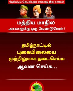 July 02 2020 0Commentதமிழ்நாட்டில் புகையிலையை முற்றிலுமாக தடை செய்ய ஆவன செய்க… Posted by Vastu_Shastram In Blog, SABP தமிழ்நாட்டில் புகையிலையை முற்றிலுமாக தடை செய்ய ஆவன செய்க…Share this: Tags: 100நாள், alchohol, govtofficials அரசாங்க_வேலை, GovtSchools, Police, SABP, Smoking, அரசு_பள்ளி, அரசு_மருத்துவமனை, இலவசபணம் இலவச_எரிவாயு, இலவசரேஷன், கணவன், காவல்துறையினர் விடுமுறை_சலுகை, குடி, தமிழக_அரசு, தமிழர்கள், புகையிலை, போதை, மது, மத்தியஅரசு, மனைவி, மாநிலஅரசு, மானியம் கலப்புதிருமணம், விவசாயம், ஸ்ரீஆண்டாள்பக்தர்கள்பேரவை Share: