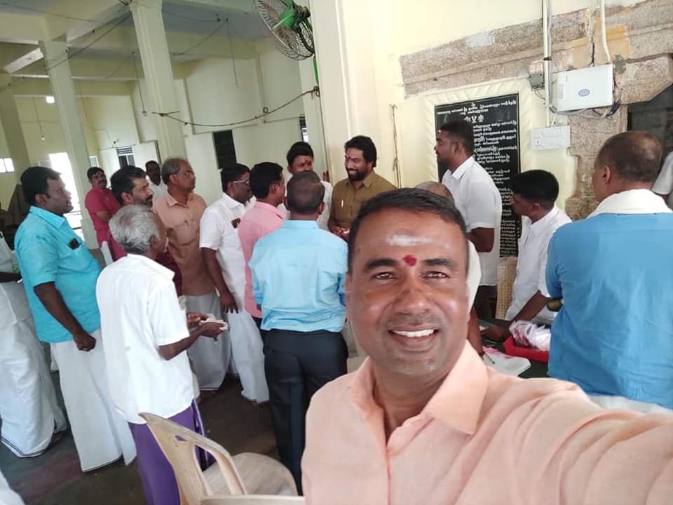 ஸ்ரீ ஆண்டாள் பக்தர்கள் பேரவை நிர்வாகிகளோடு கலந்துரையாடி திருக்கோஷ்டியூர் தங்க விமான திருப்பணி பற்றி கேட்டு வாழ்த்துக்களை தெரிவித்தார்
