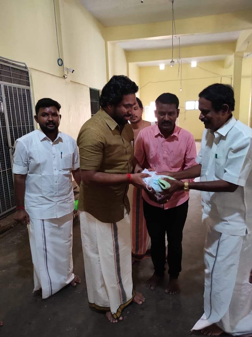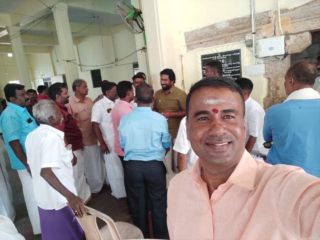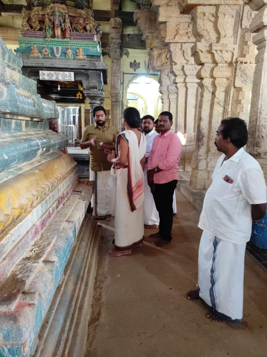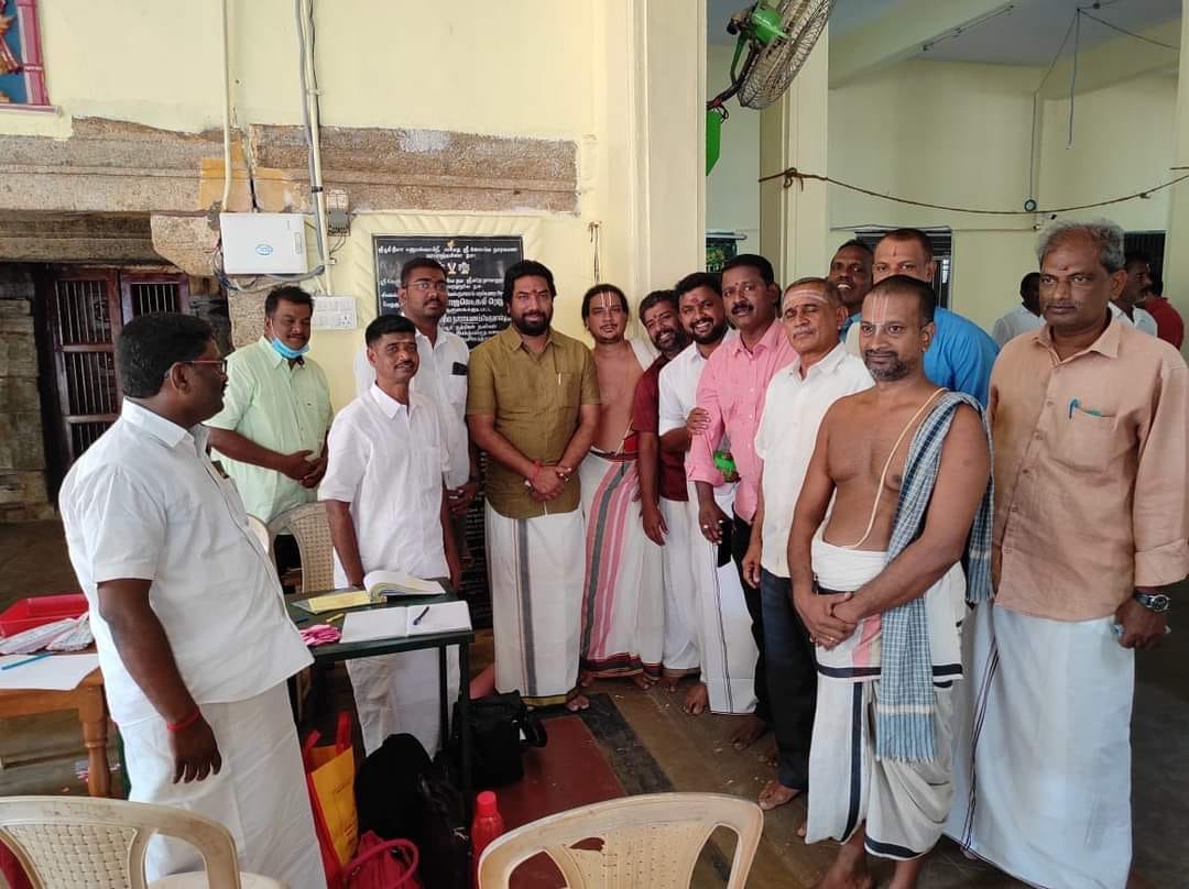 ஸ்ரீ ஆண்டாள் பக்தர்கள் பேரவை நிர்வாகிகளோடு கலந்துரையாடி திருக்கோஷ்டியூர் தங்க விமான திருப்பணி பற்றி கேட்டு வாழ்த்துக்களை தெரிவித்தார்