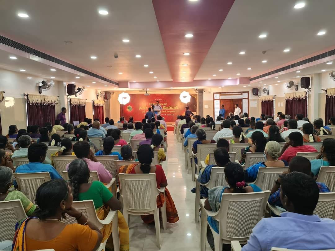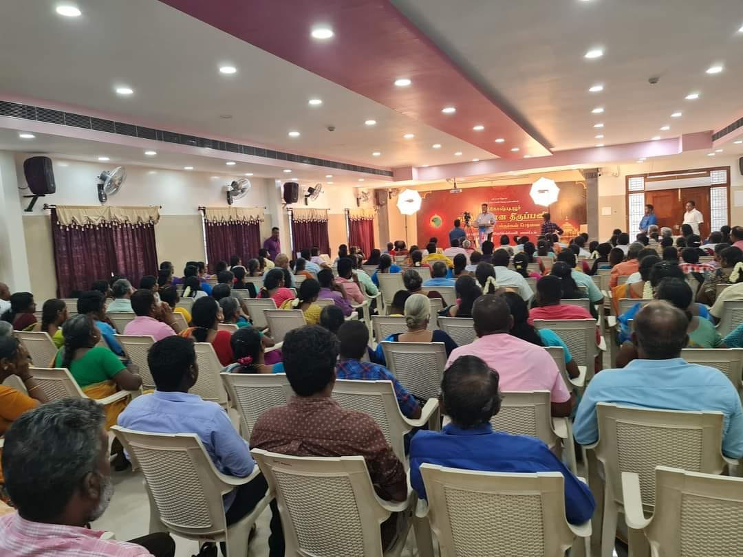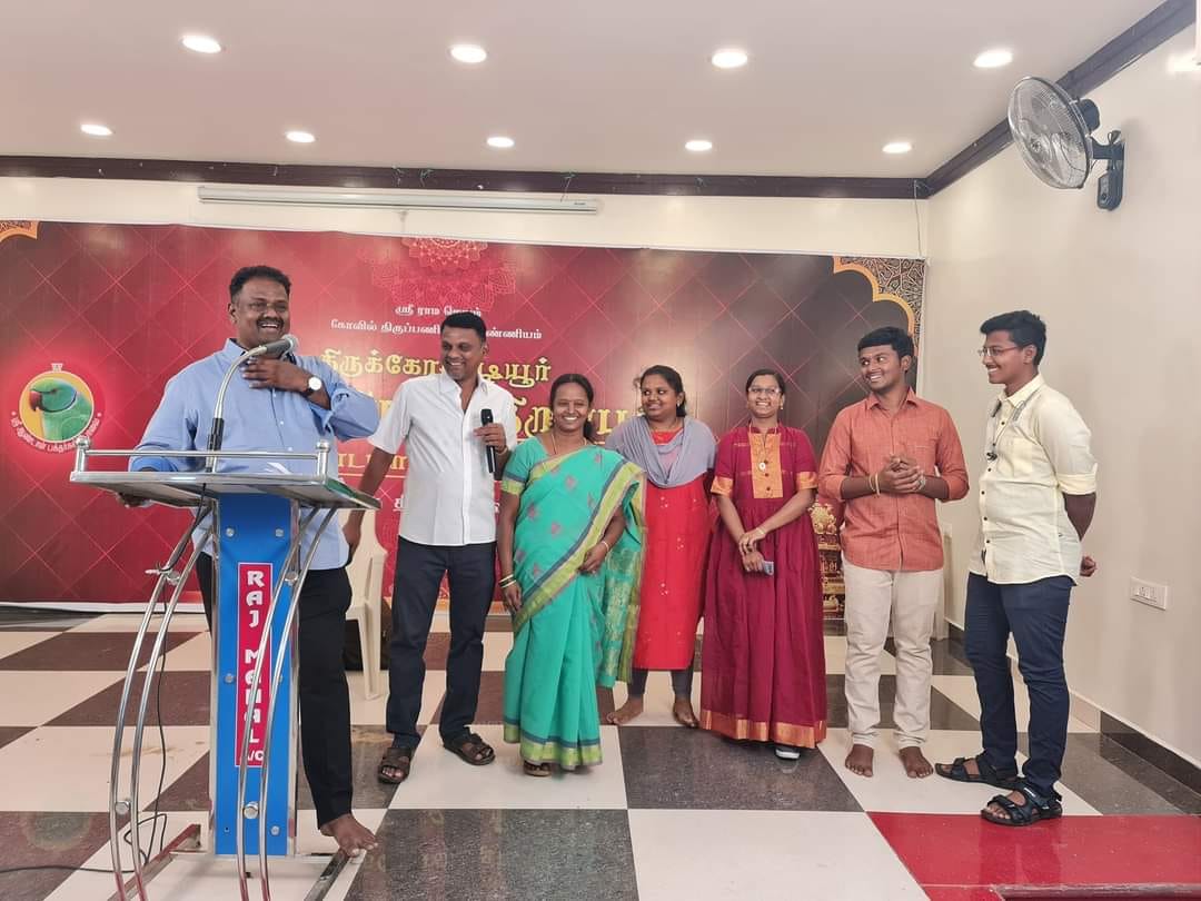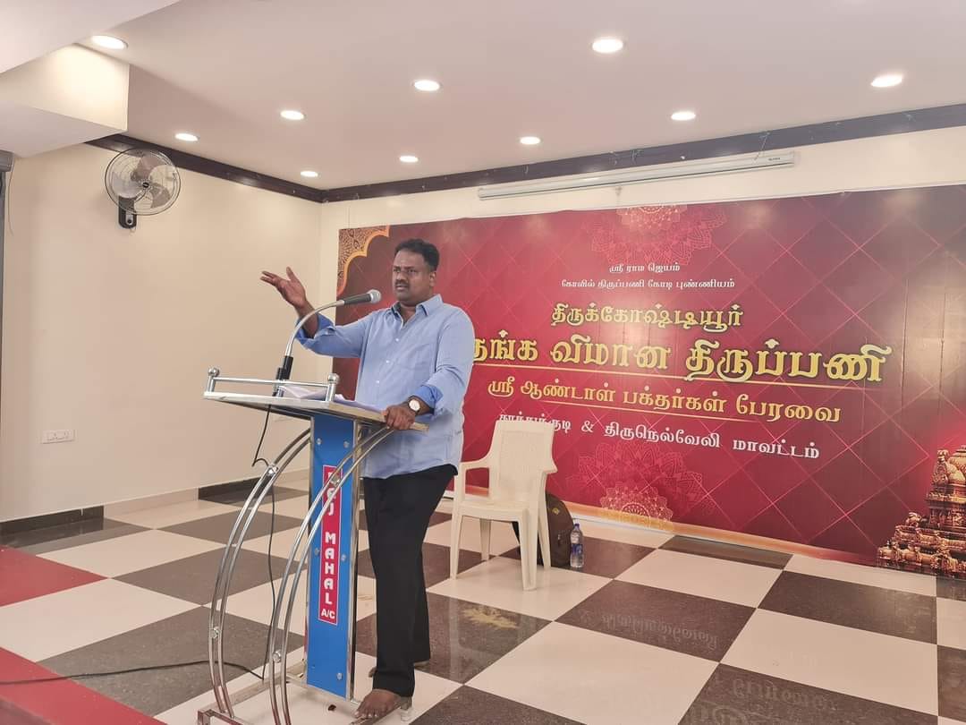 திருச்செந்தூர் ராஜ் மஹாலில் திருக்கோஷ்டியூர் தங்க விமான திருப்பணி நிகழ்ச்சி முனைவர் ஆண்டாள் P சொக்கலிங்கம் அவர்கள் தலைமையில் சிறப்பான முறையில் நடைபெற்றது..
