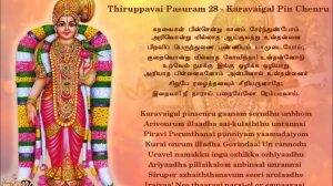 கறவைகள் பின்சென்று கானம் சேர்ந்துண்போம் அறிவொன்றும் இல்லாத ஆயர்குலத்து உன்றன்னை பிறவி பெறுந்தனை புண்ணியம் யாமுடையோம் குறைவொன்றும் இல்லாத கோவிந்தா! உன்தன்னோடு உறவேல் நமக்கிங்கு ஒழிக்க ஒழியாது அறியாத பிள்ளைகளோம் அன்பினால் உன்தன்னை சிறுபேர் அழைத்தனவும் சீறி யருளாதே இறைவா! நீ தாராய் பறையேலோர் எம்பாவாய்.