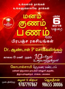 December 24 2018 0Commentபிரபஞ்ச ரகசியங்கள் – மனம் குணம் பணம் Posted by Vastu_Shastram In Blog, posters Share this: Tags: jan 6, madurai, பிரபஞ்ச ரகசியங்கள், மனம் குணம் பணம் Share: