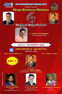 இன்று(26.04.2020) மாலை 6 மணி முதல் 7:30 மணி வரை JCI Pondicherry French City நடத்தும் பெரிதினும் பெரிது கேள் 2.0 என்கின்ற கலந்துரையாடலில் ரௌத்திரம் பழகு என்ற தலைப்பின் கீழ் நான் பேச உள்ளேன். Zoom என்கின்ற Apk மூலமாக நீங்களும் கலந்து கொள்ளலாம். மேலும், என் உரையாடல் முடிந்த பிறகு மாலை 6:45 மணிக்கு மேல் உங்களது கேள்விகளை என்னிடம் கேட்கலாம்.