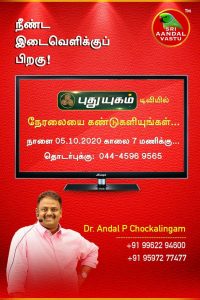 வரும் திங்கட்கிழமை (05-10-2020 ) புதுயுகம் டிவியில் நேரலையை கண்டுகளியுங்கள்.