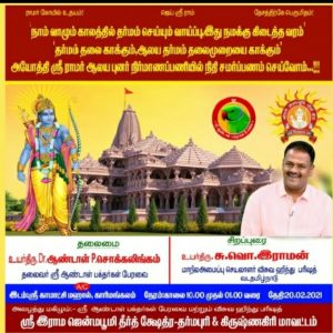 February 22 2021 0Commentவாருங்கள் ..தாருங்கள்… Posted by Vastu_Shastram In Blog, posters வாருங்கள் ..தாருங்கள்…Share this: Tags: ayodhya, ayodhyaramamandirnidhisamarpan, coimbatore, DrAndalPChockalingam, erode, kovai, meeting, namakkal, RamMandir, rammandirayodhya, RSS, SABP, Sri_Aandal_Bakthargal_Peravai, Srilanka, SriramJanmbhoomiTeerthKshetraTrust, SriRamMandir, valapadi, vhpss, அயோத்தியா, இலங்கை, தாருங்கள், ராமர்கோவில், வாருங்கள், ஸ்ரீ_ஆண்டாள்_பக்தர்கள்_பேரவை, ஸ்ரீராம்_ஜென்மபூமி_தீர்த்த_சேஷ்டா Share: