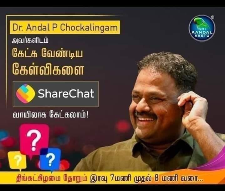 ஒவ்வொரு திங்கட்கிழமை தோறும் இரவு 7 மணி முதல் 8 மணி வரை, முனைவர்.ஆண்டாள் P.சொக்கலிங்கம் அவர்களிடம் ஷேர்சாட் வாயிலாக உங்கள் கேள்விகளை கேட்கலாம்…