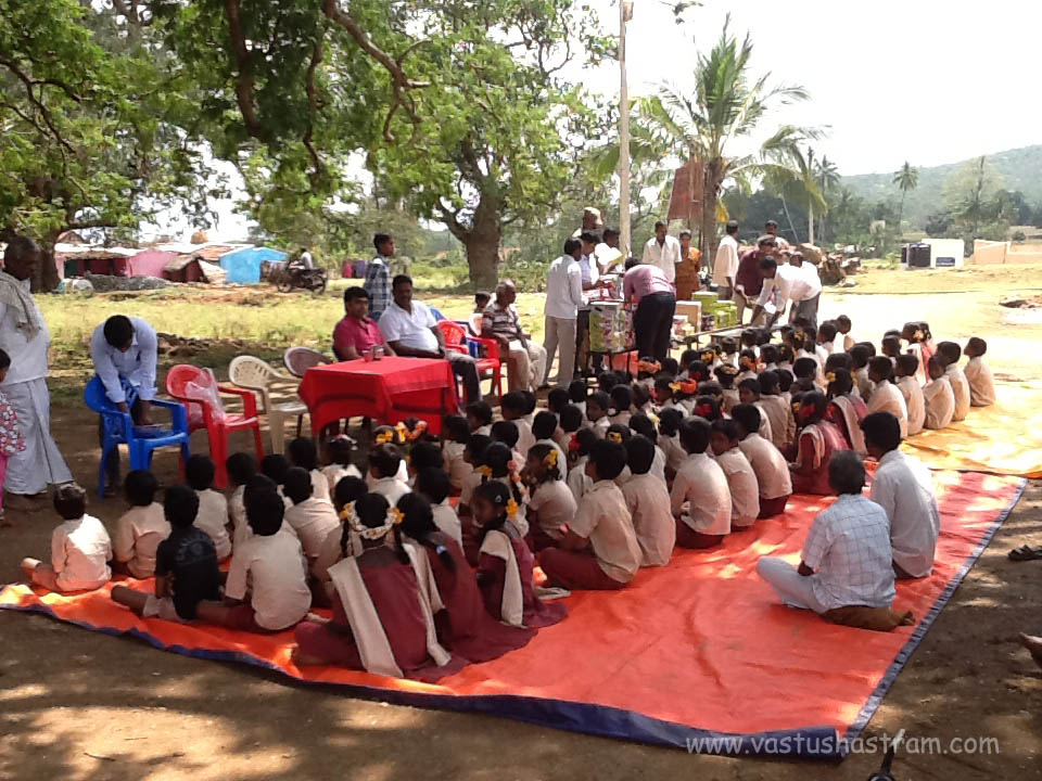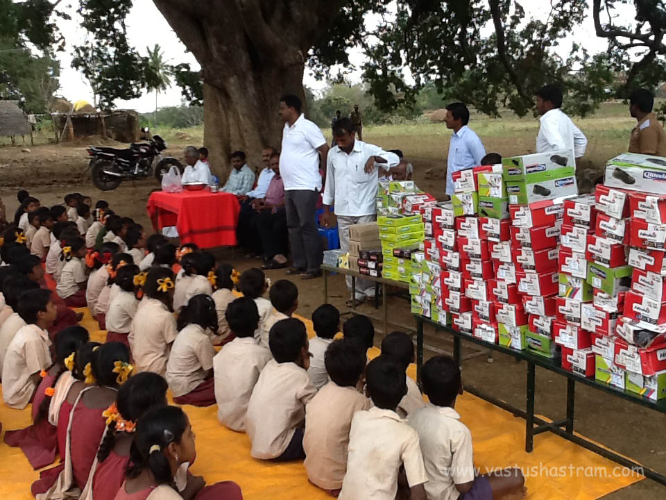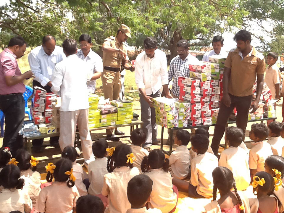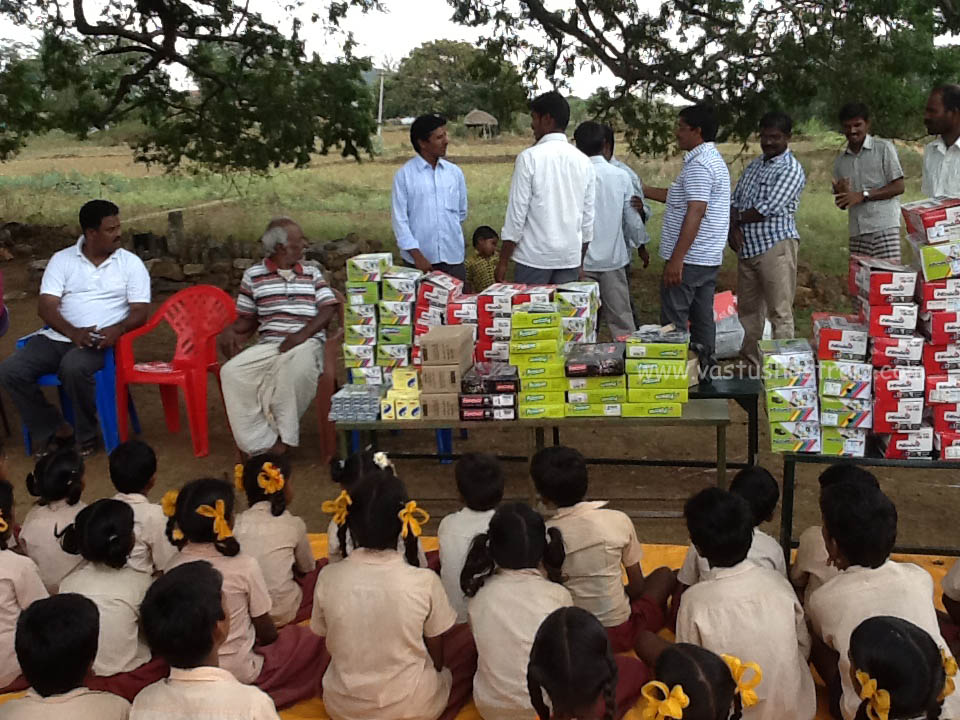 07-03-2015 அன்று சித்தேரி மலை மண்ணூர் கிராமம், பாப்பிரெட்டிபட்டி தாலுகா, தர்மபுரி மாவட்டத்தில் உள்ள அரசு பள்ளியில் படிக்கும் 98 ஏழை குழந்தைகளுக்கு ஸ்ரீ ஆண்டாள் கல்வி திட்டம் மூலம்