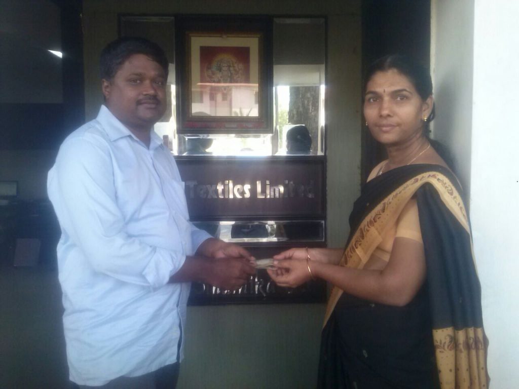 ஸ்ரீ ஆண்டாள் கல்வி திட்டம்(SAEP) மூலமாக கோயம்புத்தூர் மேட்டுப்பாளையத்தை சேர்ந்த டாக்டர்.கோகுலப்ரியா ரமேஷ் அவர்கள் ரூ.20,000/- ம், திருப்பூரை சேர்ந்த திரு.நாகேந்திரன் அவர்கள் ரூ.5000/- ம் மற்றும் திருப்பூரை சேர்ந்த திரு.பூபதி அவர்கள் ரூ.5000/- ம் ஆக மொத்தம் ரூ.30,000/- பணத்தை கோயம்புத்தூரை சேர்ந்த திருமதி.செல்வி அவர்களின் மகள் கார்த்திகா (பெங்களூரில் M.B.A – Finance இரண்டாம் ஆண்டு) என்பவருக்கு கொடுத்து உதவினார்கள்.