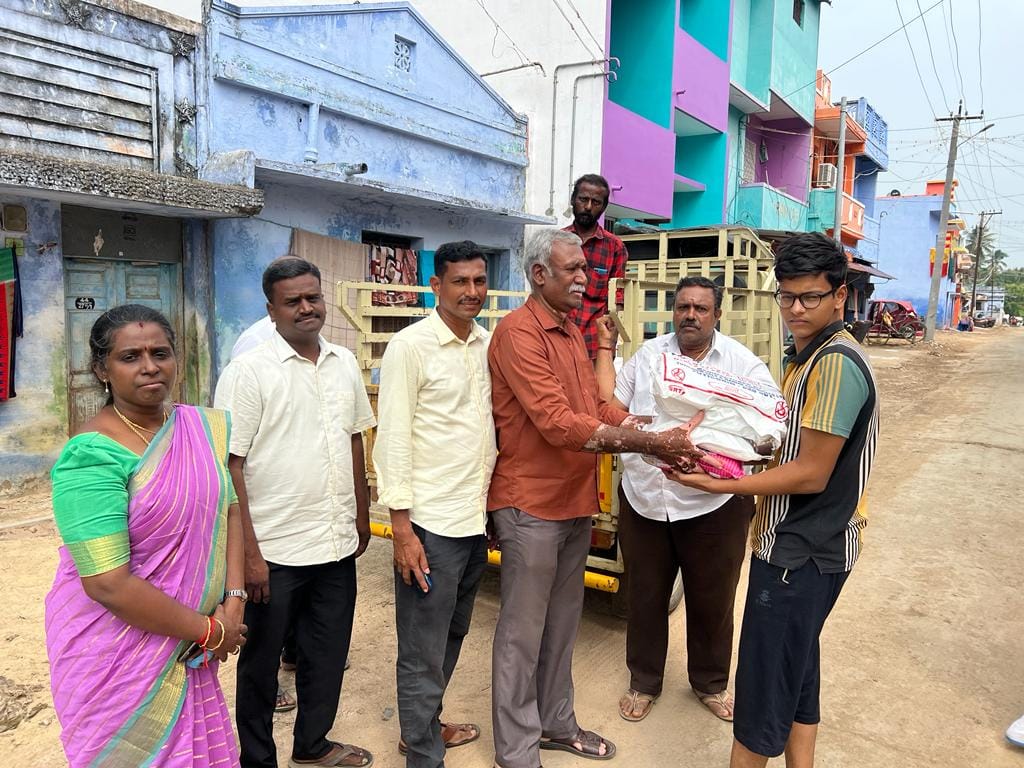இன்று 01.01.2024 தூத்துக்குடி மாவட்டத்தில் மழையால் பாதிக்கப்பட்ட கீழ்க்கண்ட பகுதிகளில் உள்ள மக்களுக்கு அரிசி மற்றும் மளிகை பொருட்கள் மற்றும் புது உடைகள் போர்வைகள் 200 குடும்பங்களுக்கு இன்று வழங்கப்பட்டது.