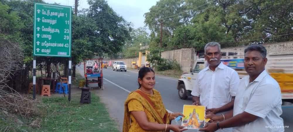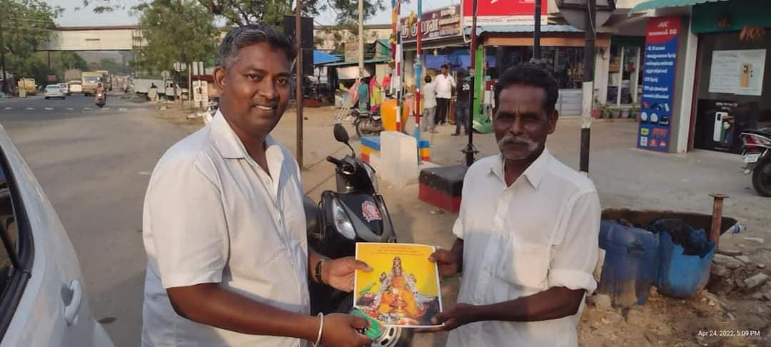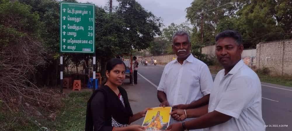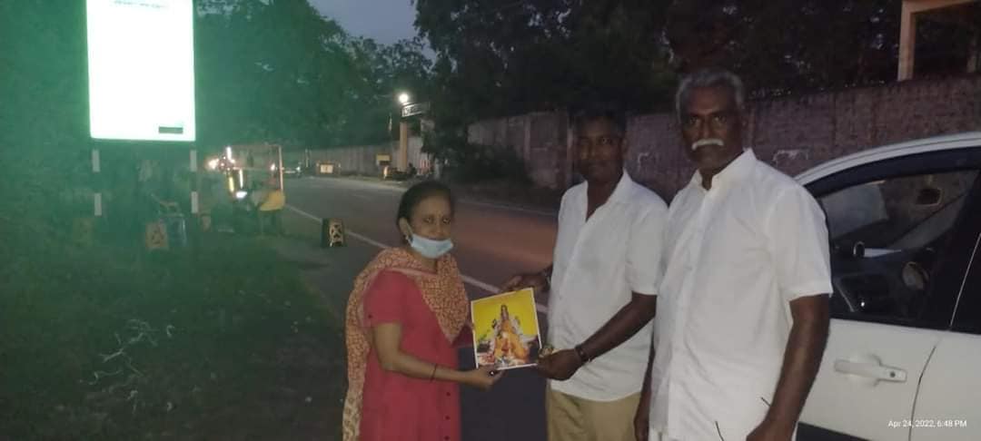 24/04/2022 அன்று செல்வ வளம் மிக்க ஸ்ரீ மகாலட்சுமி போட்டோ ஸ்ரீ ஆண்டாள் பக்தர்கள் பேரவை சார்பில் உலகம் முழுவதும் வழங்கி வருகின்றோம். அந்த வகையில் படத்திற்கு பதிவு செய்திருந்த அன்பர்களுக்கு, ஸ்ரீ ஆண்டாள் பக்தர்கள் பேரவை நிர்வாகி பூபதி & நாகராஜன் அவர்களுடன் சேர்ந்து மேட்டூர், மேச்சேரி, குஞ்சாண்டியூர், கொளத்தூர், நங்கவல்லி பகுதிகளில் மக்களுக்கு ஸ்ரீ மஹாலக்ஷ்மி படம் வழங்கிய போது எடுத்த புகைப்படங்கள்..