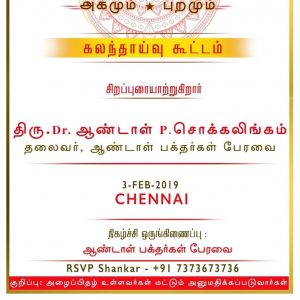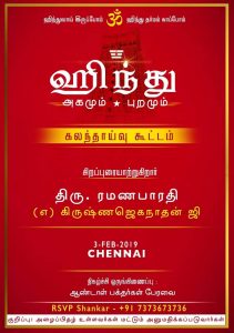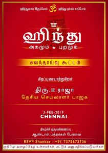 February 01 2019 0Commentஹிந்து – அறமும் புறமும் -கலந்தாய்வு – Feb 3 Posted by Vastu_Shastram In Blog, posters Share this: Tags: chennai, feb 3, H.raja, ramanabharathi, vigananda, அறமும் புறமும், கலந்தாய்வு, ஹிந்து Share: