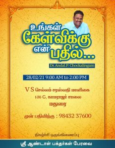 March 01 2021 0Commentஸ்ரீராம் ஜென்மபூமி தீர்த்த சேஷ்டா – MaduraiA Meeting(28/02/2021)!! Posted by Vastu_Shastram In Blog, posters ஸ்ரீராம் ஜென்மபூமி தீர்த்த சேஷ்டா – MaduraiA Meeting(26/02/2021)!!Share this: Tags: ayodhya, ayodhyaramamandirnidhisamarpan, coimbatore, DrAndalPChockalingam, erode, kovai, meeting, namakkal, RamMandir, rammandirayodhya, RSS, SABP, Sri_Aandal_Bakthargal_Peravai, Srilanka, SriramJanmbhoomiTeerthKshetraTrust, SriRamMandir, valapadi, vhpss, அயோத்தியா, இலங்கை, தாருங்கள், ராமர்கோவில், வாருங்கள், ஸ்ரீ_ஆண்டாள்_பக்தர்கள்_பேரவை, ஸ்ரீராம் ஜென்மபூமி தீர்த்த சேஷ்டா - Pondicherry Meeting, ஸ்ரீராம்_ஜென்மபூமி_தீர்த்த_சேஷ்டா Share: