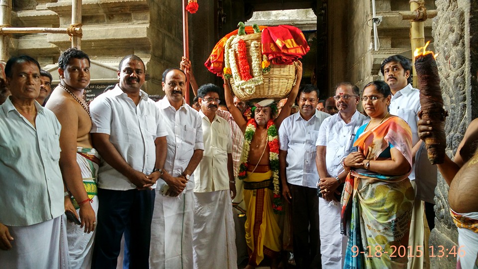 கோவிலை அடைந்த உடன் நானும், திரு.லக்ஷ்மி நாராயணனும் மற்றும் அவருடன் வந்த அவருடைய இரண்டு நண்பர்களும் கோவில் தக்கார் அறைக்கு அழைத்து செல்லப்பட்டோம். உங்களுக்காகத் தான் wait பண்றோம். வாங்க என்று ஒரு கூடையை தூக்க சொன்னார்கள்.