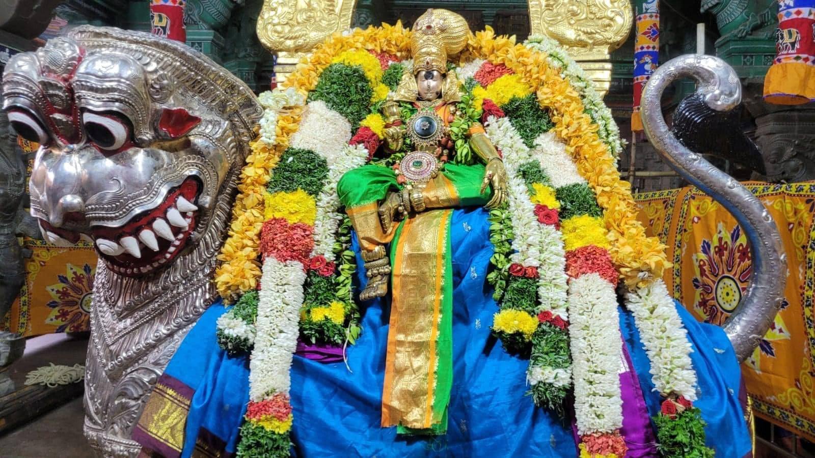 இன்றைய திவ்ய தரிசனம் (23/07/23) அருள்மிகு மீனாட்சி அம்மை சிம்மவாகனத்தில். அருள்மிகு மீனாட்சி சுந்தரேசுவரர் திருக்கோயில், மதுரை. அனைவரும் வாழ்வாங்கு வாழ வாழ்த்துக்கள் முனைவர் ஆண்டாள் P சொக்கலிங்கம்