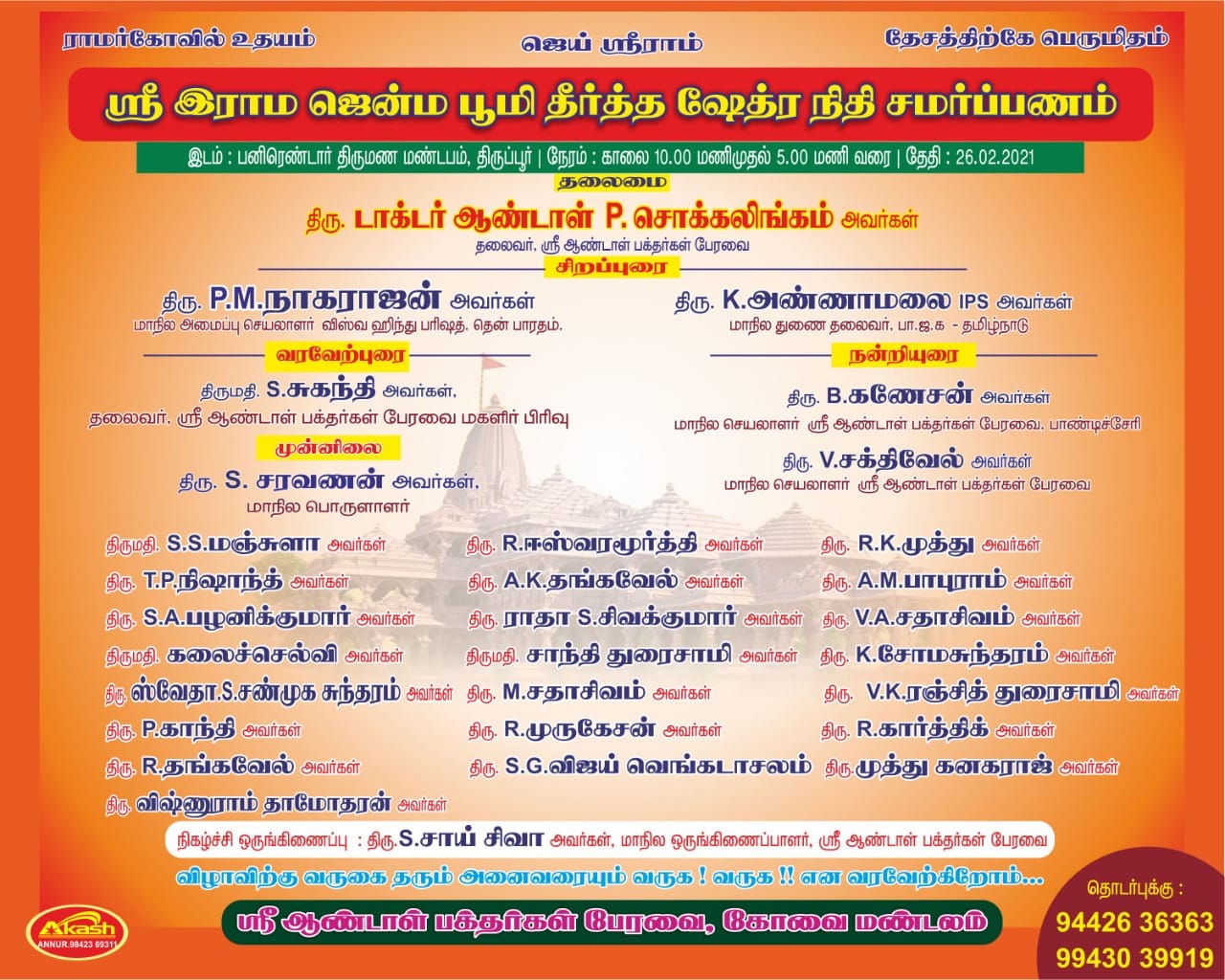 ஸ்ரீராம் ஜென்மபூமி தீர்த்த சேஷ்டா – Tiruppur Meeting(26/02/2021)!!