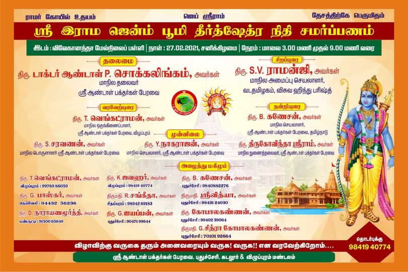 ஸ்ரீராம் ஜென்மபூமி தீர்த்த சேஷ்டா – Pondicherry Meeting(27/02/2021)!!