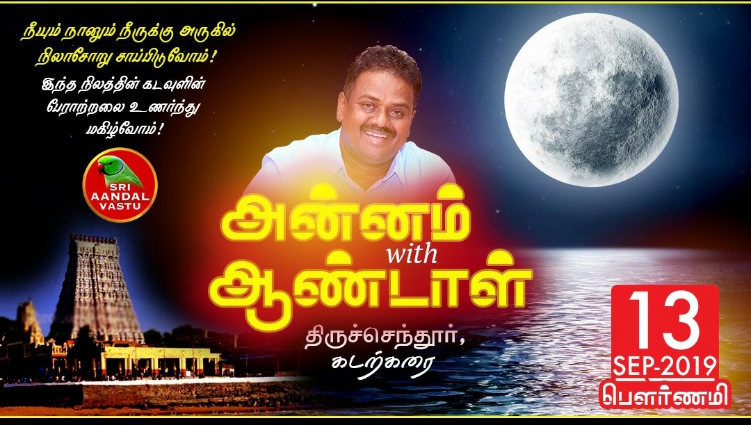 “அன்னம் With ஆண்டாள்” – திருச்செந்தூர் கடற்கரை!!(பௌர்ணமி அன்று இரவு) “நீங்களும் நாங்களும்” ஒன்றாக #நிலாச்சோறு சாப்பிடுவோம்!! இந்த நிலத்துடைய கடவுளின் #பேராற்றலை உணர்ந்து மகிழ்வோம்!! கண்களில் ரசனைக்கு #முழு நிலவும்,இங்கு உண்டு!! காதுகளில் ரசனைக்கு #கடல் அலைகளின் ஓசையும், இங்கு உண்டு!! தேகத்தின் ரசனையை உணர கடல் #அன்னையின் மடியும், இங்கு உண்டு!! இப்பிரபஞ்சத்தின் ரசனையை மனதால் உணர வாருங்கள், திருச்சீரலைவாய்க்கு!! #அன்னம் with ஆண்டாள்! – திருச்செந்தூர் தேதி: செப்டம்பர் 13 பௌர்ணமி அன்று […]