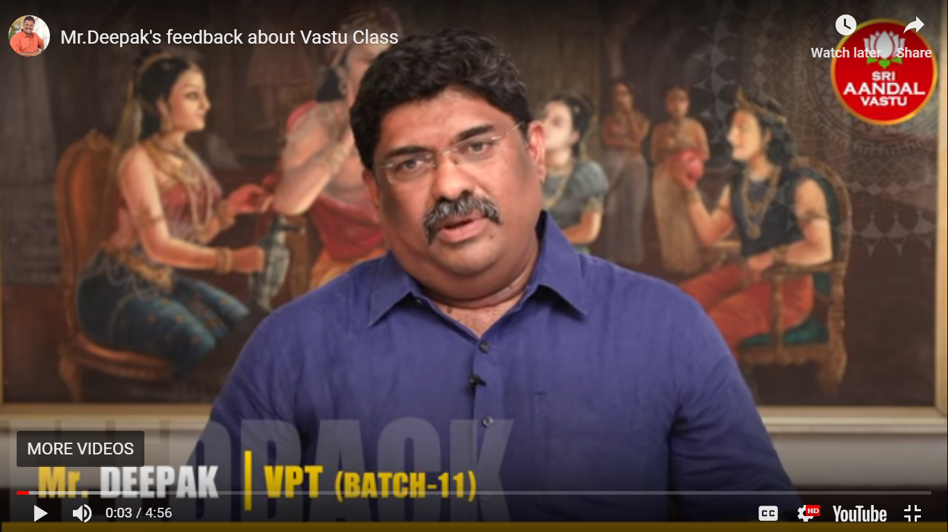 ஸ்ரீ ஆண்டாள் வாஸ்து பயிற்சி வகுப்பு 11 – ஐ பற்றி சென்னையை சேர்ந்த திரு.தீபக் அவர்களின் கருத்து…