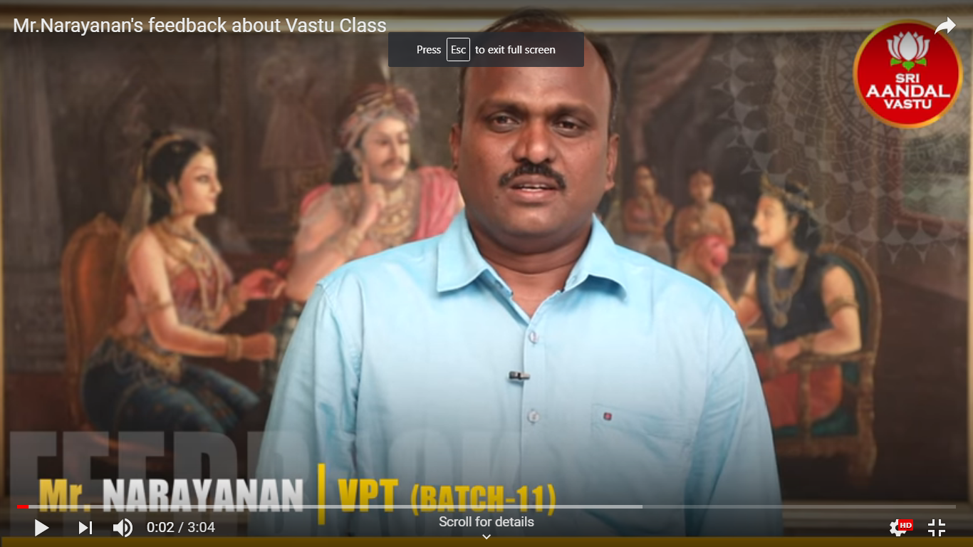 ஸ்ரீ ஆண்டாள் வாஸ்து பயிற்சி வகுப்பு 11 – ஐ பற்றி ஓசூரை சேர்ந்த திரு.நாராயணன் அவர்களின் கருத்து…