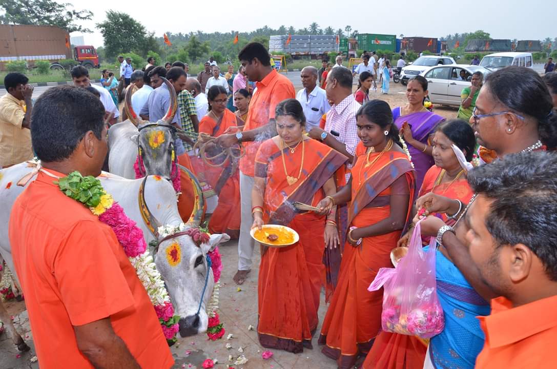 நாமக்கல்லில் நடைபெற்ற இந்து தன்னெழுச்சி மாநாட்டில் நிறைவேற்றிய தீர்மானங்கள்: – தீர்மானம் – 6 ஹிந்துக்களால் தெய்வமாக வழிபடப்பட்டு வரும் கோமாதாவைக் கொல்வது ஹிந்து மதத்தின் மீது தொடுக்கப்படும் தாக்குதலே. இதை அண்ணல் காந்தியடிகளும் வலியுறுத்திள்ளார். இந்த அடிப்படையில் பசுவதைத் தடை சட்டம் இயற்றப்பட்டு அது சீராக நடைமுறைப்படுத்தப்பட வேண்டும்.