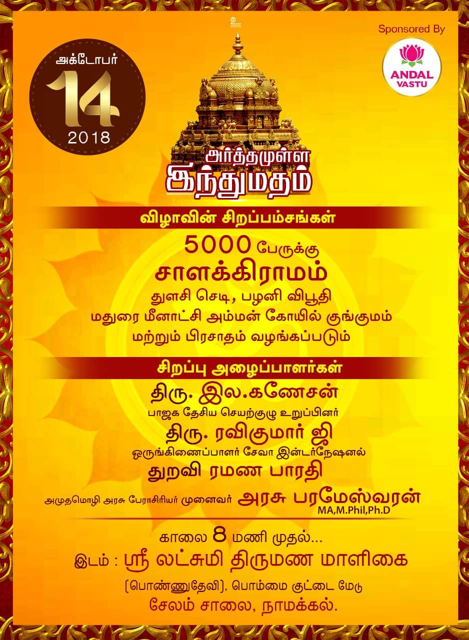 Arthamulla Indhu madham Event – october 14 @ Namakkal