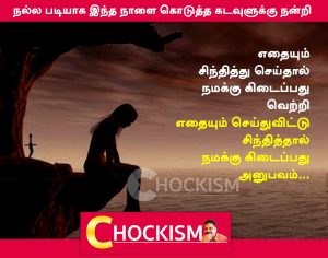 June 19 2020 0CommentChockism Posted by Vastu_Shastram In Blog, Chockism ChockismShare this: Tags: Chocki_quotes, Chockism, motivationalquotes motivationalthoughts, quotes, tamil quotes, தன்னம்பிக்கை, தமிழ் Quotes தன்னம்பிக்கை_வரிகள் தத்துவங்கள், புதிய சிந்தனைகள் Share: