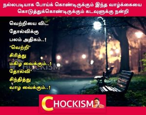 July 29 2020 0CommentChockism Posted by Vastu_Shastram In Blog, Chockism ChockismShare this: Tags: Chocki_quotes, Chockism, motivationalquotes motivationalthoughts, quotes, tamil quotes, தன்னம்பிக்கை, தமிழ் Quotes தன்னம்பிக்கை_வரிகள் தத்துவங்கள், புதிய சிந்தனைகள் Share:
