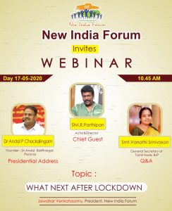 May 16 2020 0CommentNew India Forum Zoom Meeting Posted by Vastu_Shastram In Blog New India Forum Zoom Meeting Share this: Tags: actor parthiban, Andal P. Chockalingam, meeting, Tmt.vanathi srinivasan, Webinar, Zoom Share: