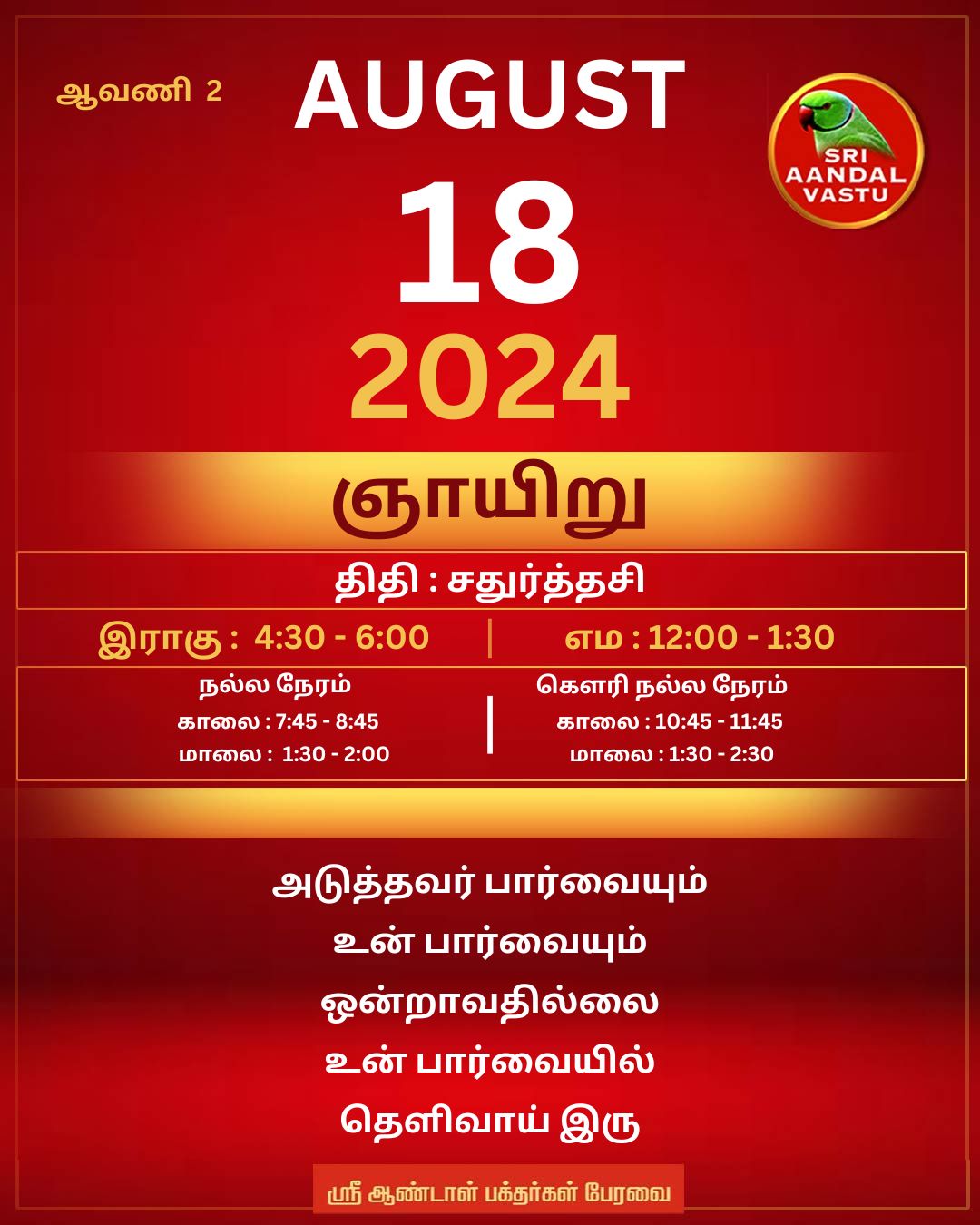 August 20 2024 0CommentSABP Posted by Vastu_Shastram In motivation SABPShare this: Tags: #motivationalspeaker, AndalpChockalingam, DrAndalPChockalingam, Life, lifechallenge, lifechanging, lifestyle, lifetips, MoneyTips, Motivation, Motivation2024, MotivationalArticle, Motivationalspeech, Motivationtamil, SABP, successful, Temples, Thesecret, thoughts, thoughtsoftheday, tipsforlife, Tiruchendur, Tiruchendur temple, திருச்செந்தூர், திருச்செந்தூர் கோயில், திருச்செந்தூர் முருகர் Share: