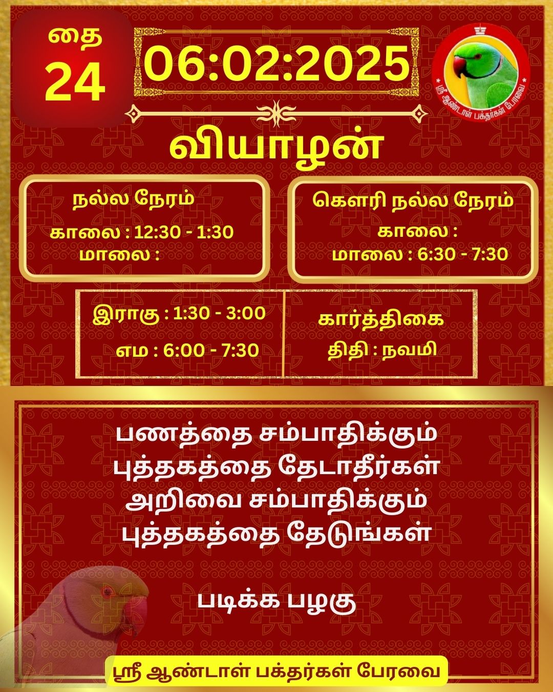 February 07 2025 0CommentSABP Posted by Vastu_Shastram In motivation SABPShare this: Tags: #daily_calender, APC, Calendar, calendar 2025, DAILY, DrAndalPChockalingam, Motivation, motivational quotes, motivational quotes daily, motivationalquotesoftheday, panjangam, SABP, SriAndalBakthargalPeravai, waytosuccess2025, ஆண்டாள், இன்றையநாள், காலண்டர், காலண்டர்2025, தன்னம்பிக்கை, தன்னம்பிக்கை2025, நாட்காட்டி, பஞ்சாங்கம், வாழ்கவளமுடன், ஸ்ரீஆண்டாள்பக்தர்கள்பேரவை Share: