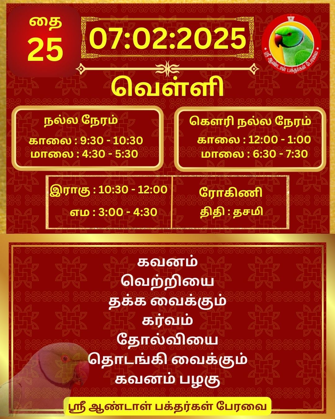 February 07 2025 0CommentSABP Posted by Vastu_Shastram In motivation SABPShare this: Tags: #daily_calender, APC, Calendar, calendar 2025, DAILY, DrAndalPChockalingam, Motivation, motivational quotes, motivational quotes daily, motivationalquotesoftheday, panjangam, SABP, SriAndalBakthargalPeravai, waytosuccess2025, ஆண்டாள், இன்றையநாள், காலண்டர், காலண்டர்2025, தன்னம்பிக்கை, தன்னம்பிக்கை2025, நாட்காட்டி, பஞ்சாங்கம், வாழ்கவளமுடன், ஸ்ரீஆண்டாள்பக்தர்கள்பேரவை Share: