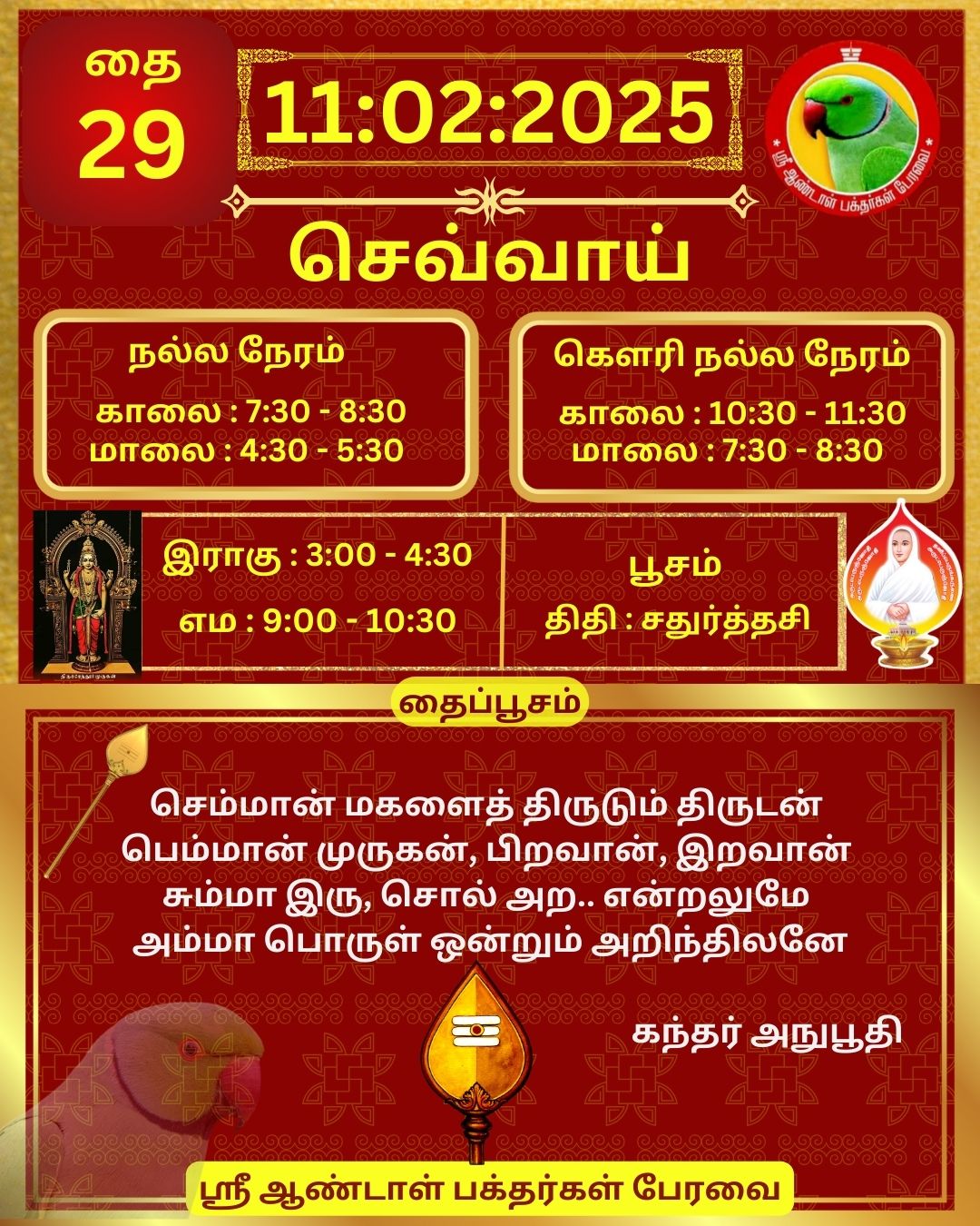 February 11 2025 0CommentSABP Posted by Vastu_Shastram In motivation SABPShare this: Tags: #daily_calender, APC, Calendar, calendar 2025, DAILY, DrAndalPChockalingam, Motivation, motivational quotes, motivational quotes daily, motivationalquotesoftheday, panjangam, SABP, SriAndalBakthargalPeravai, waytosuccess2025, ஆண்டாள், இன்றையநாள், காலண்டர், காலண்டர்2025, தன்னம்பிக்கை, தன்னம்பிக்கை2025, நாட்காட்டி, பஞ்சாங்கம், வாழ்கவளமுடன், ஸ்ரீஆண்டாள்பக்தர்கள்பேரவை Share: