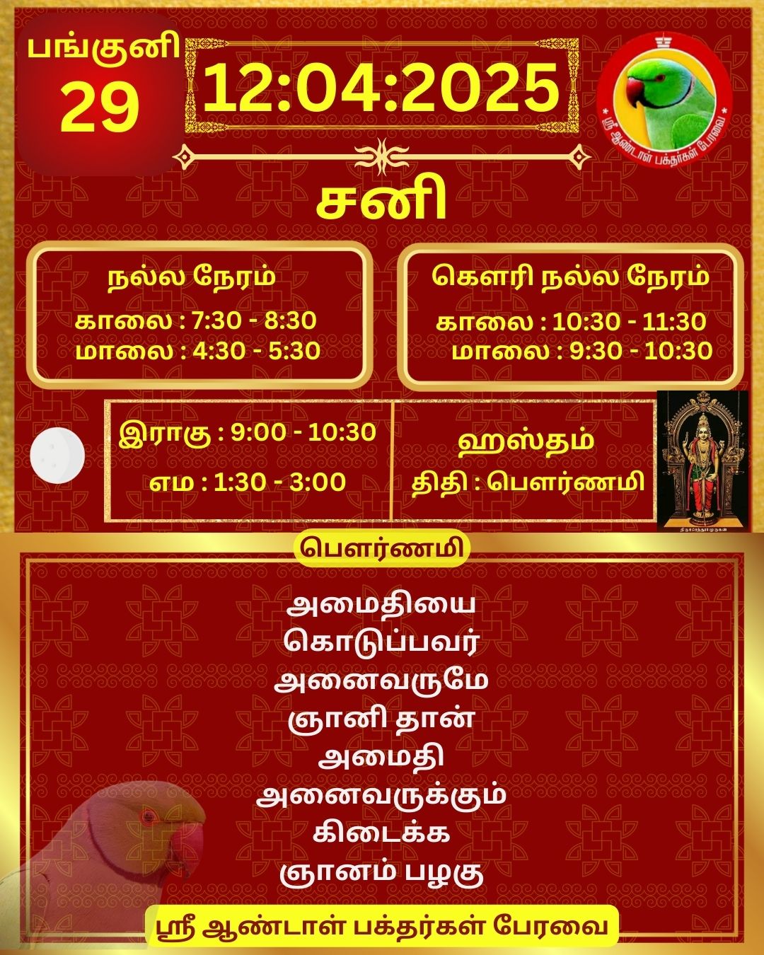 April 12 2025 0CommentSABP Posted by Vastu_Shastram In motivation SABPShare this: Tags: #daily_calender, APC, Calendar, calendar 2025, DAILY, DrAndalPChockalingam, Motivation, motivational quotes, motivational quotes daily, motivationalquotesoftheday, panjangam, SABP, SriAndalBakthargalPeravai, waytosuccess2025, ஆண்டாள், இன்றையநாள், காலண்டர், காலண்டர்2025, தன்னம்பிக்கை, தன்னம்பிக்கை2025, நாட்காட்டி, பஞ்சாங்கம், வாழ்கவளமுடன், ஸ்ரீஆண்டாள்பக்தர்கள்பேரவை Share: