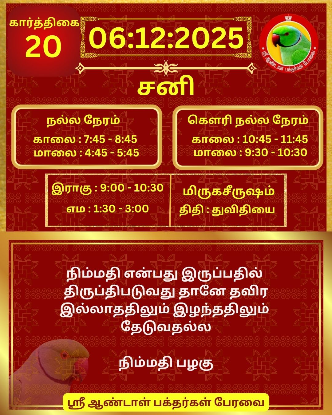 December 06 2025 0CommentSABP Posted by Vastu_Shastram In motivation SABPShare this: Tags: #daily_calender, APC, Calendar, calendar 2025, DAILY, DrAndalPChockalingam, Motivation, motivational quotes, motivational quotes daily, motivationalquotesoftheday, panjangam, SABP, SriAndalBakthargalPeravai, waytosuccess2025, ஆண்டாள், இன்றையநாள், காலண்டர், காலண்டர்2025, தன்னம்பிக்கை, தன்னம்பிக்கை2025, நாட்காட்டி, பஞ்சாங்கம், வாழ்கவளமுடன், ஸ்ரீஆண்டாள்பக்தர்கள்பேரவை Share: