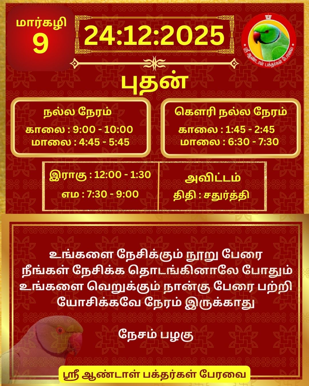 December 30 2025 0CommentSABP Posted by Vastu_Shastram In motivation SABP Share this: Tags: #daily_calender, APC, Calendar, calendar 2025, DAILY, DrAndalPChockalingam, Motivation, motivational quotes, motivational quotes daily, motivationalquotesoftheday, panjangam, SABP, SriAndalBakthargalPeravai, waytosuccess2025, ஆண்டாள், இன்றையநாள், காலண்டர், காலண்டர்2025, தன்னம்பிக்கை, தன்னம்பிக்கை2025, நாட்காட்டி, பஞ்சாங்கம், வாழ்கவளமுடன், ஸ்ரீஆண்டாள்பக்தர்கள்பேரவை Share: