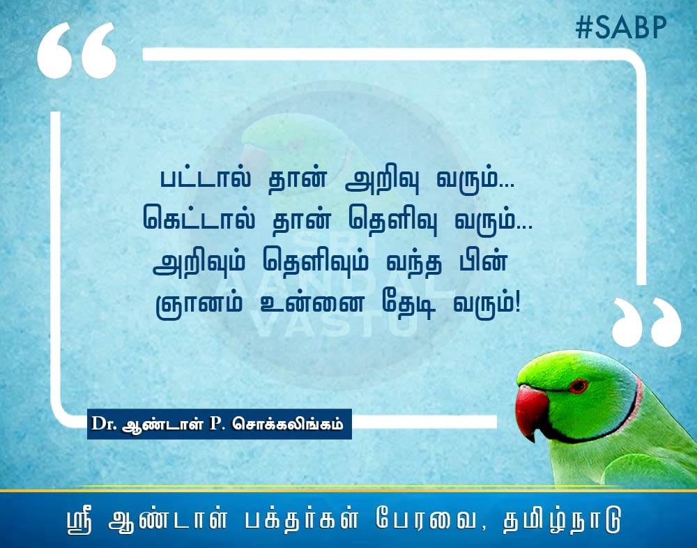 May 16 2022 0CommentSABP Posted by Vastu_Shastram In motivation SABPShare this: Tags: #motivationalquotes, #motivationalspeaker, AndalpChockalingam, AndalVastu, DrAndalPChockalingam, MoneyTips, Motivation, Motivationalspeech, SABP, SriAandalVastu, Thesecret, தன்னம்பிக்கை Share: